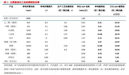 根据计算结果,单位GDP碳排放居于前列的基础化工产品分别是煤制乙二醇、煤制甲醇、合成氨、工业硅、电石、烧碱、黄磷、MTO、纯碱。集中在低附加值的大宗化工品,基本上与电耗高/电力成本占比高的产品相吻合。同时,也与内蒙古给出的禁止新建产能的化工品清单基本吻合。
