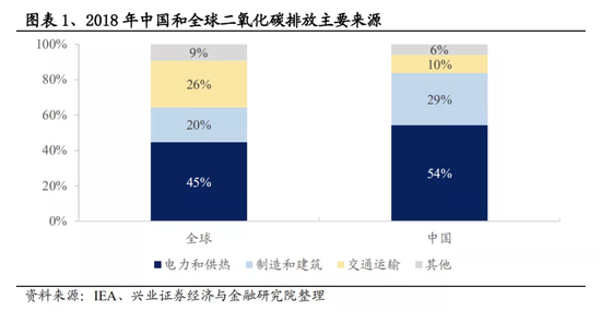 碳排放是目前被认为导致全球变暖的主要原因之一。我国碳排放中占比最大的(54%)来源于电力和供热部门在生产环节中化石燃料的燃烧。