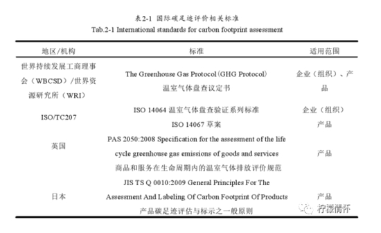 国际间主要碳足迹评价相关标准及执行规范如表 2-1 所示。