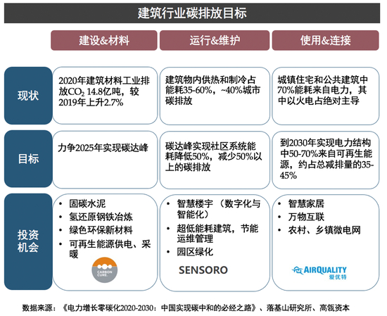 社区的一个重要物理构成是建筑,而一个建筑从原材料的生产运输、建设、运行、维护到使用、连接都是非常耗电的,这也意味着丰富的投资机会。