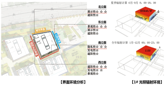 通过平衡建筑四面的展示性、景观行、隐私性与遮阳性,实现遮阳最优化;