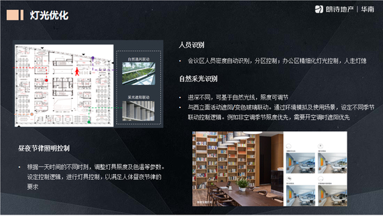 通过识别人员、自然光及昼夜节律照明控制,实现灯光优化;