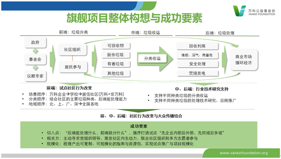另一方面,万科公益基金会和政府、政策、法规密切联系,积极落实相应法规政策,通过试点和案例影响低碳相关法律法规的制定,比如万科公益基金会的社区厨余垃圾分散式堆肥模式已被北京等城市纳入新的垃圾分类条例。除此之外,万科公益基金会也希望进行一定的市场对接,如推动在社区以黑水虻养殖的方式来处理厨余垃圾,高效、生态,有市场潜力。