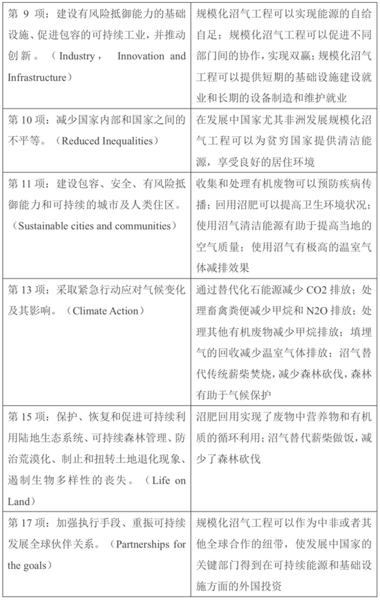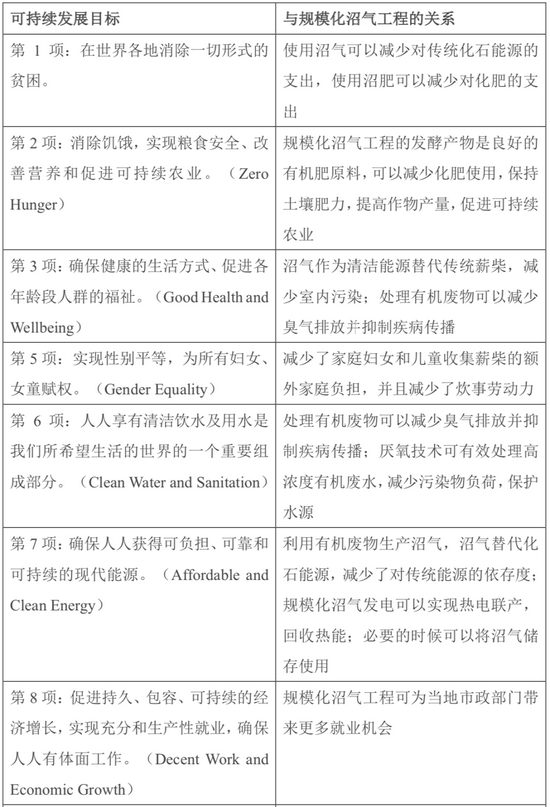 2015年是联合国千年发展目标计划(MGDs)的收官之年,也是新的可持续发展目标(SDGs)启动之年。17个可持续发展目标旨在转向可持续发展道路,解决社会、经济和环境三个维度的发展问题。发展规模化沼气工程对于可持续发展目标的实现有显而易见的促进作用。根据笔者分析,17个可持续发展目标中至少有13项与发展规模化沼气工程有直接或间接关系。