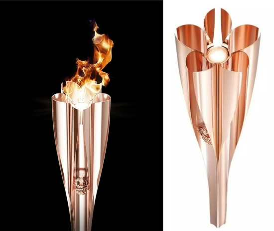 2020年东京奥运火炬全长 71 厘米,重量 1.2 公斤,出自日本设计大师 Tokujin Yoshioka(吉冈德仁)之手。其灵感源自日本樱花,通体呈粉亮质感的“樱花金”色,更采用了和日本新干线列车相同的高端制作工艺。