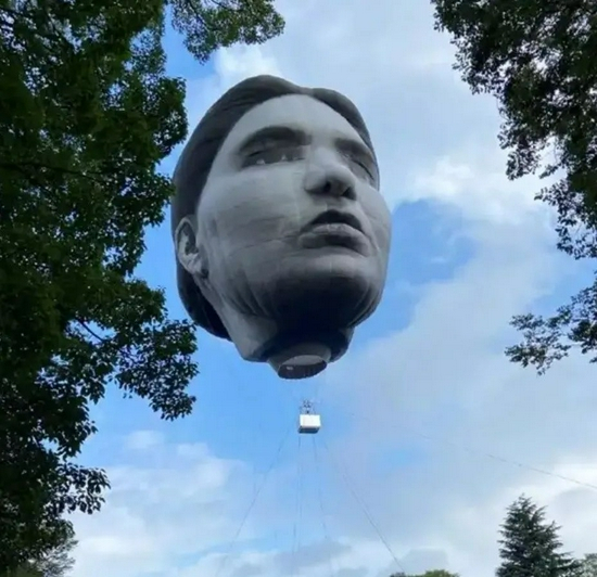 为了表示庆祝的巨型人脸漂浮气球,看起来有一点说不清楚的诡异。