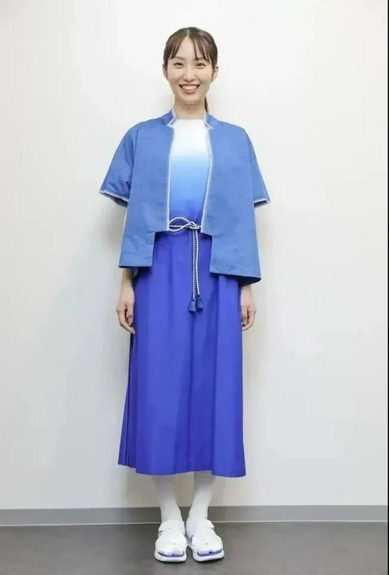 接下来我们聊东京奥运会志愿者礼仪服装设计,同样以蓝色为主色调,非常简约,采用日本传统服饰的制作工艺,由京都的匠人手工缝制。