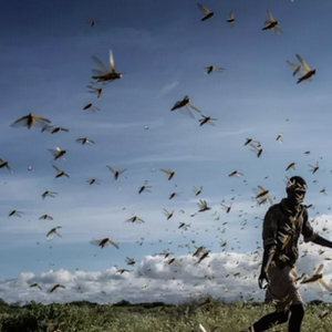 同年,非洲东北部“非洲之角”地区,在持续近一年的干旱后突遇约为历史同期300%的超强降水,引发严重洪水和山体滑坡——这也为蝗虫的繁衍提供了完美温床,最终酿成2020年初的历史性蝗灾——期间单个蝗虫群覆盖面积可达2400万平方公里,一天内就可以消耗8500万人所需的粮食。