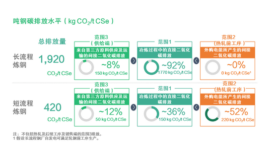钢铁行业是能源密集型产业,在制造过程中需要外购大量的能源,从而产生间接温室气体排放。以中国年产10亿吨钢材估算,每年会产生2.4亿吨二氧化碳当量的范围2排放。