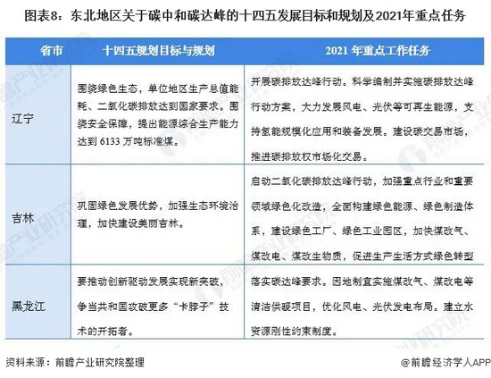 结合区域发展特性,东北地区各省十四五规划目标和2021年重点工作任务中主要以发展能源替代和建设绿色工业园区为主。