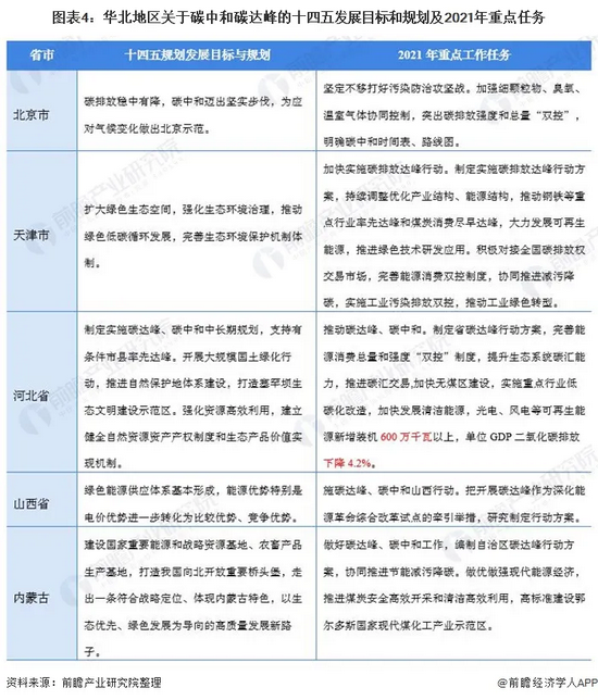 随着碳中和和碳达峰任务目标的提出,煤炭又是碳排放的主要能源来源,因此华北地区成为我国传统能源产能结构调整的头号阵地。华北地区在碳中和碳达峰背景下十四五发展的主要目标和规划和2021年重点任务是为实现碳达峰和碳中和加快传统能源能源结构的的改革,推进煤炭安全高效开采和清洁高效利用。