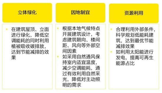 房地产行业可以通过绿色建筑设计与绿色材料应用来降低建筑前期的碳排放。企业在建筑设计阶段就应融合节能低碳理念,促进建筑整体节能水平提高,并通过在建筑设计过程中考虑立体绿化、开发地气候特点、高效利用自然资源等方面,发展绿色建筑,达到减少建筑耗能与碳排放的目的。