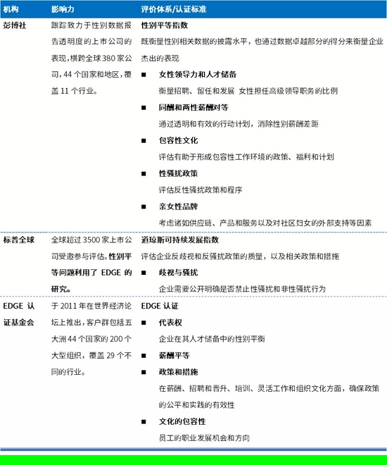 由于不同国家或地区对性骚扰的定义是依据自身文化背景确立的,公众对性骚扰的边界认知和接受程度各异,性骚扰的伤害程度最终取决于“受害者”自身的态度。这可以说,没有一个标准适用于所有国家。即便法律阐明了企业对职场性骚扰承担的义务,这种文化差异和标准各异也鞭策各地区企业,在提及杜绝工作场所性骚扰等性别不平等的问题时,还需要在公开场所再次明晰职场性骚扰的涉及范畴,融入企业价值观。因此,企业需要外界评价体系,来指明企业在性别问题管治方面是否做得好以及怎么做,推动企业建立和完善机制。