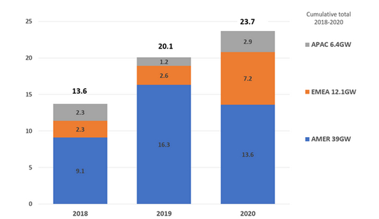 除了以上方法外,还可以利用购电协议(PPA)。PPA在过去三年中显著增长,2020年签订了23.7 吉瓦的公司可再生电力购电协议,相当于同年新增可再生能源发电总容量的近9%。亚马逊是最活跃的公司,签署了35份PPA协议,总容量为5.5 吉瓦。半导体制造商台积电(TSMC)、Total Energies、美国电信公司Verizon和Facebook在PPA交易量排名前五。PPA合同可用于证明供应的可再生性。