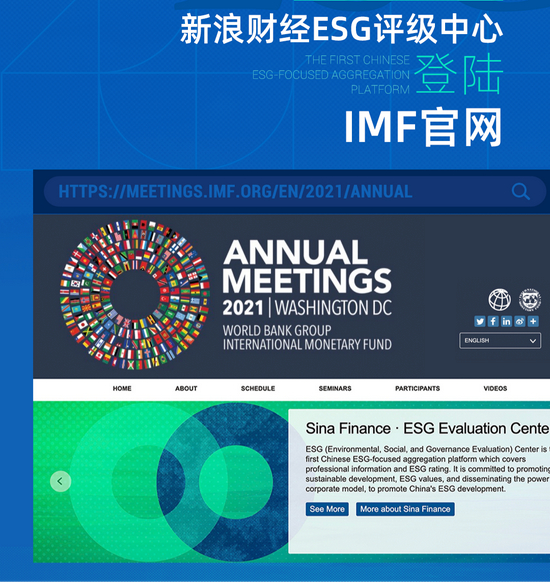 新浪财经作为中国最早关注社会及企业可持续发展的媒体,致力于推动与传播全球可持续发展。此次新浪财经ESG评级中心登录2021年IMF与世行秋季年会官网,体现了合作双方对全球可持续发展目标实现的共同愿景。未来双方将加深合作,助力中国ESG可持续发展与实践。