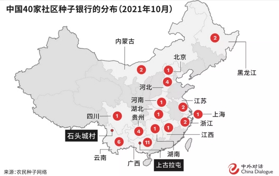 继上古拉屯之后,一些致力于老品种保育的科学家和公益机构将“藏种于民”的实践推向全国。在过去20年间,在一些NGO、地方政府和个人的努力下,全国的社区种子库已经有了40家,遍及12个省。这些种子库都对本地传统品种进行收集、保存和活态利用,并在网络内部开展种子交换。