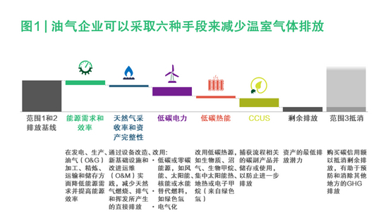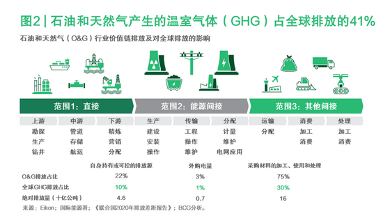 油气行业范围1的直接排放占全球温室气体排放量的10%,范围2和范围3的间接排放占31%(参阅图2)。然而,考虑到该行业巨大的排放规模,仅靠能源多样化、利用低碳能源替代品,还不足以将排放量降至可接受的水平。