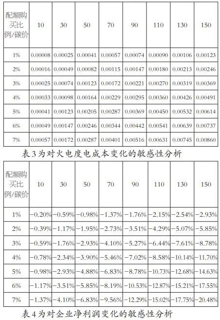 测算结果表明,在配额价格50元/吨的情况下,火电厂按3%的比重购买碳配额,则企业度电成本将增加0.43%,若保持上网电价不变,则企业净利润下降2.80%。