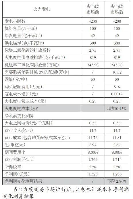 为进一步分析碳交易市场对发电企业经营的影响,我们选定100万千瓦火电机组进行测算,相关参数设定如下: