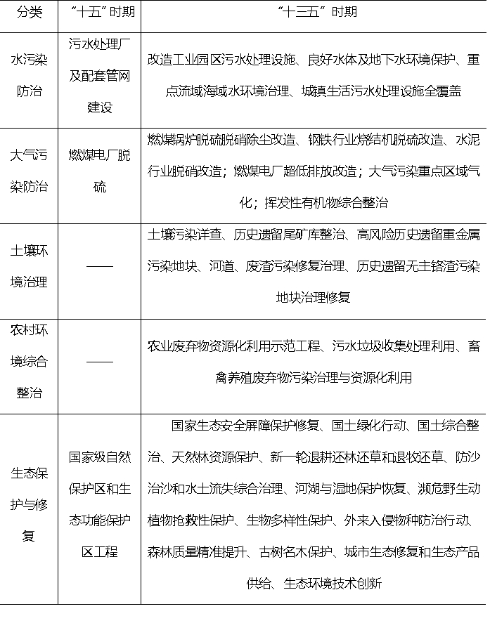 表1“十五”时期和“十三五”时期国家生态环境保护重点工程