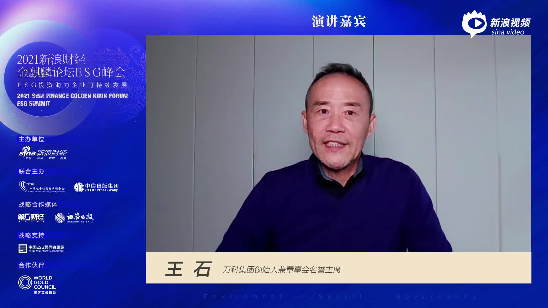 2021新浪金麒麟论坛·ESG峰会于12月3日在线上举行。万科集团创始人兼董事会名誉主席王石出席并演讲。