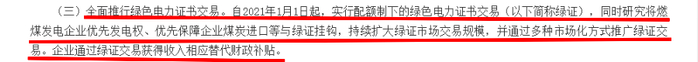 意见明确,自2021年1月1日起,实行配额制下的绿色电力证书交易,持续扩大绿证市场交易规模,并通过多种市场化方式推广绿证交易。