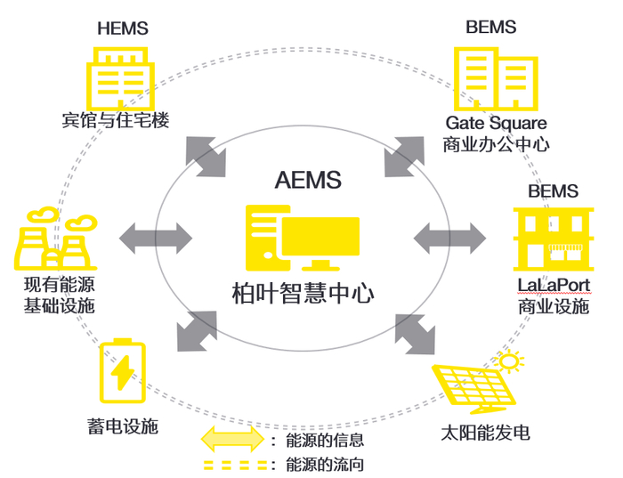 统筹开发能源管理系统的“硬体系”,借助智慧中心建设可持续发展的楼宇建筑设计。柏叶新城采用了社区及设施能源管理系统(EMS),多层级能源管理系统覆盖片区、建筑、家庭等多能源场景,并通过设立智慧中心(AEMS),负责整个城市的能源运用、管理和控制,实现能源管理的可视化;同时,建设可持续发展的楼宇建筑,将可持续环境设计与AEMS相结合,摆脱对电力等能源的依赖,充分利用可再生能源及生物能源;注重区域绿色建筑设计与运营,通过一体太阳能板、楼宇整体绿化、绿色建材、中水回用等设计,购物大楼和办公大楼两栋大楼合计实现了约40%的减排5,成为了日本领先的绿色节能建筑代表。