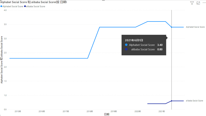 可以看到,谷歌母公司alphabet近期S分数有所下降,阿里S分数虽有上升,但是仍然处于低位。各企业的社会责任表现均有缺陷。