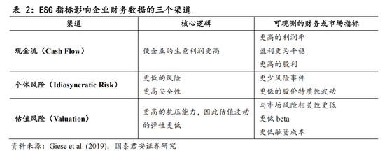 ESG指标对上市公司财务和股价的影响基本符合预期。1)统计范围。作者使用的是MSCI统计的2006-2019年发达经济体1600条股票数据。2)ESG指标。根据公司的ESG指标大小,将所有公司划分为五个部分(按月动态调整),Q5是得分最高的组别,Q1是得分最低的组别。使用Q5与Q1组别之间特定财务数据的差值,体现财务数据在该指标上的差异。3)财务和估值指标。基本面和风险指标经过Z-score调整。在下图中,如果数据结果符合该渠道的预测结果,那么使用蓝色柱状代表,红色柱状则为不符合。表3可以看出,MSCI 的ESG指标是符合三个渠道的预测结果的。其中,公司治理(G)的影响最高。