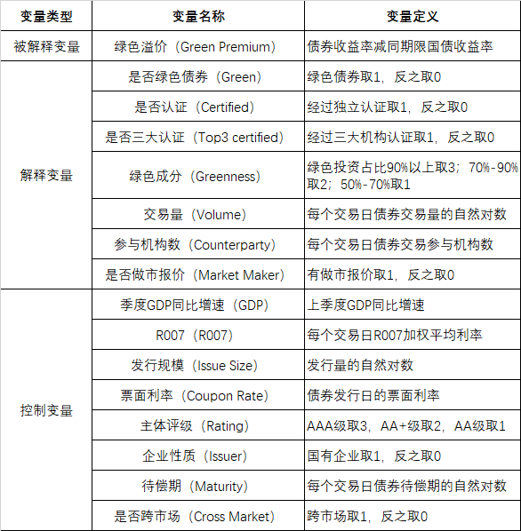 假设1:绿色债券与普通债券相比到期收益率更低,具有绿色溢价。