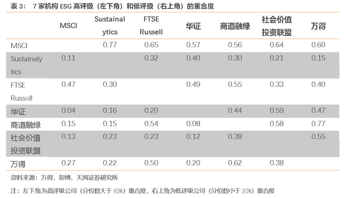 ESG本质上是一种价值观,各评级机构给出的结果不同,事实上客观反映了评级者对不同问题的看重程度、对指标选取的独有考量、对定性数据的处理习惯、对公司风险的思考框架,因此较难建立统一客观的标准。