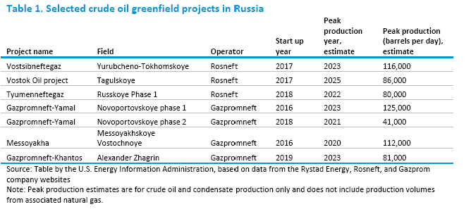 过去几年,俄罗斯有许多新开发的项目正在开发中,当这些项目投产并达到峰值产量水平时,它们将在短期内提振俄罗斯的原油产量。(表1)