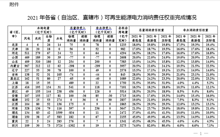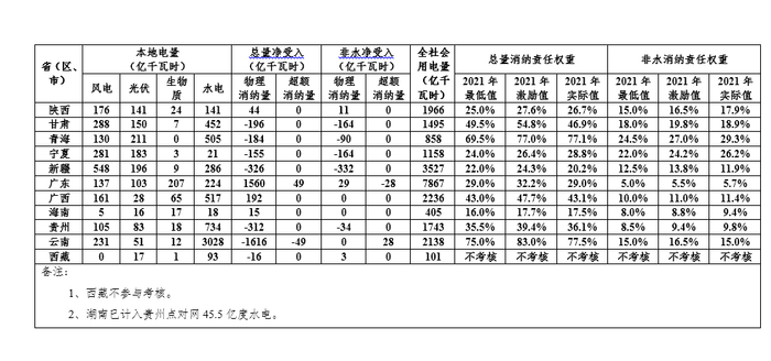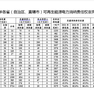 国家能源局关于2021年可再生能源电力消纳责任权重完成情况的通报