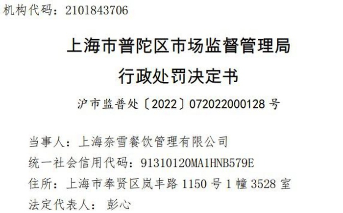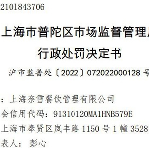 据上海市市场监管局消息,近日,上海奈雪餐饮管理有限公司因发布虚假广告被上海市普陀区市场监督管理局罚款约1.58万元。
