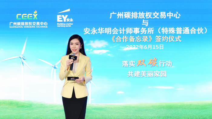 2022年6月15日,安永华明会计师事务所(特殊普通合伙)与广州碳排放权交易中心有限公司签订《合作备忘录》,将为大湾区经济高质量发展和加快实现双碳目标开启新的篇章。