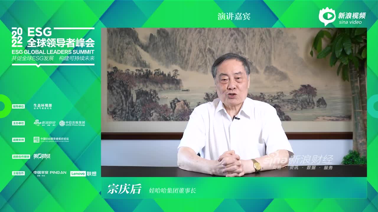 娃哈哈集团董事长宗庆后在“中国企业提升ESG竞争力的创新实践”环节发表主题演讲。