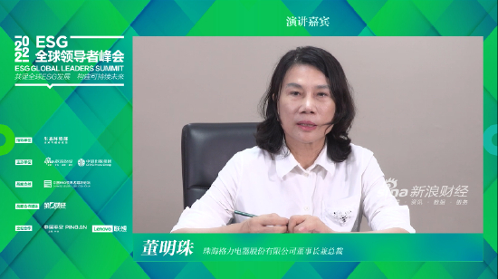 珠海格力电器股份有限公司董事长兼总裁董明珠在“中国企业提升ESG竞争力的创新实践”环节发表主题演讲。