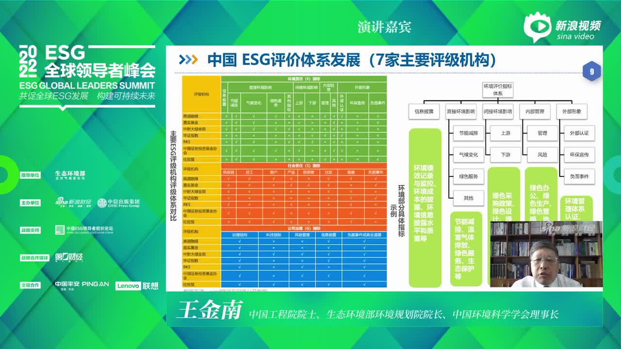 中国工程院院士,生态环境部环境规划院院长,中国环境科学学会理事长王金南则分享了《构建中国ESG体系,促进企业绿色治理》报告。他重点介绍了三方面内容,包括:国内外ESG发展的总体情况、中国在企业绿色治理特别是上市公司环境信息披露和环境绩效评估方面的实践以及从企业绿色治理角度提出加快建立中国ESG体系的几点建议。