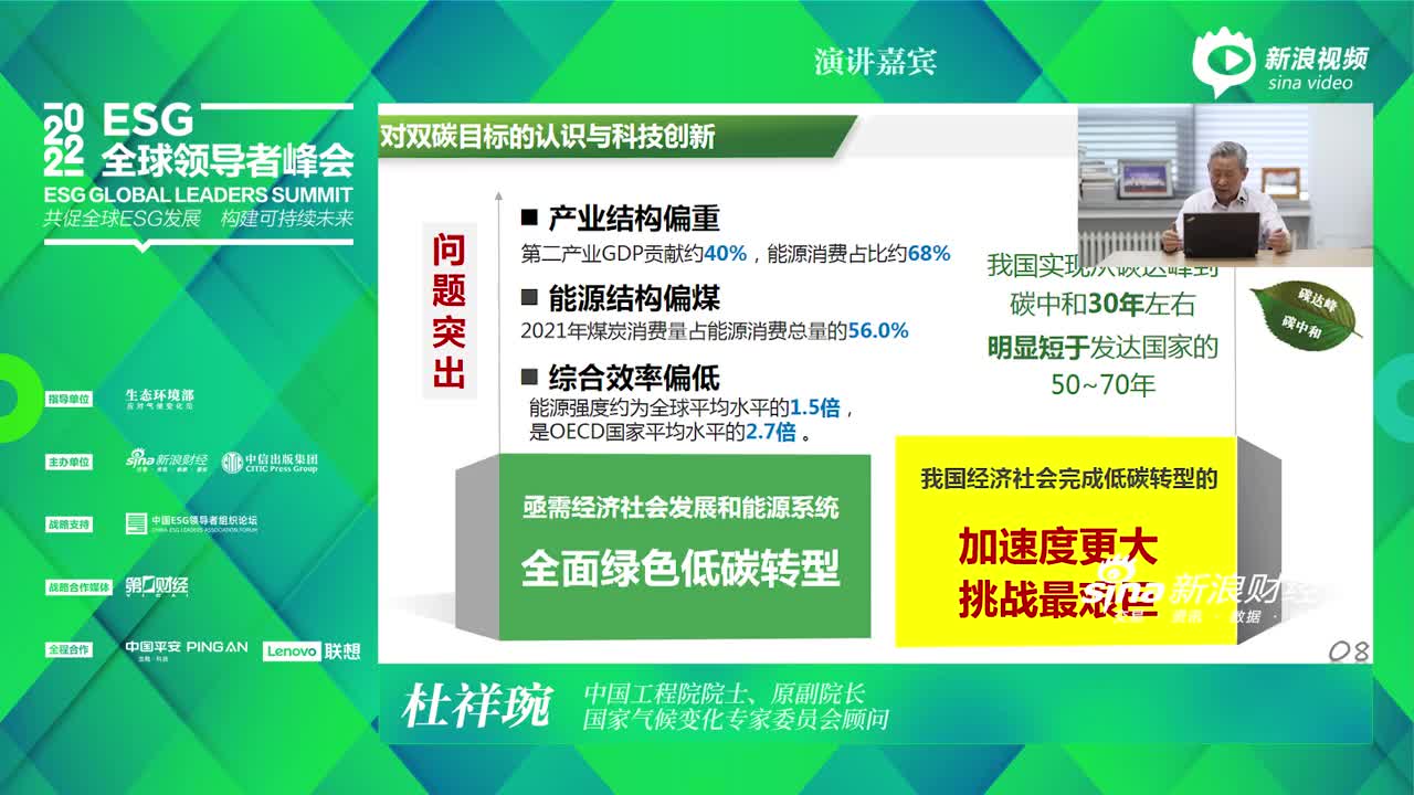 在“从‘零碳就绪’走向‘净零排放’”环节中,中国工程院院士、原副院长,国家气候变化专家委员会顾问杜祥琬提出,实现双碳目标是一个复杂的系统工程,是一个长达几十年的这样一个科学的转型过程。在此过程中,要防止一刀切、简单化,同时又要防止转型不力带来落后和无效投资。