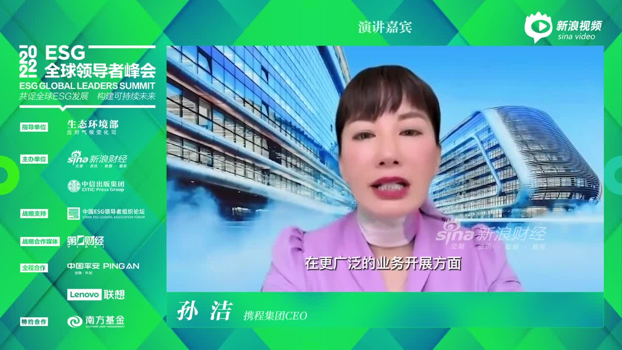 携程集团CEO孙洁在“科技创新对零碳转型的意义”环节中发表主题演讲。
