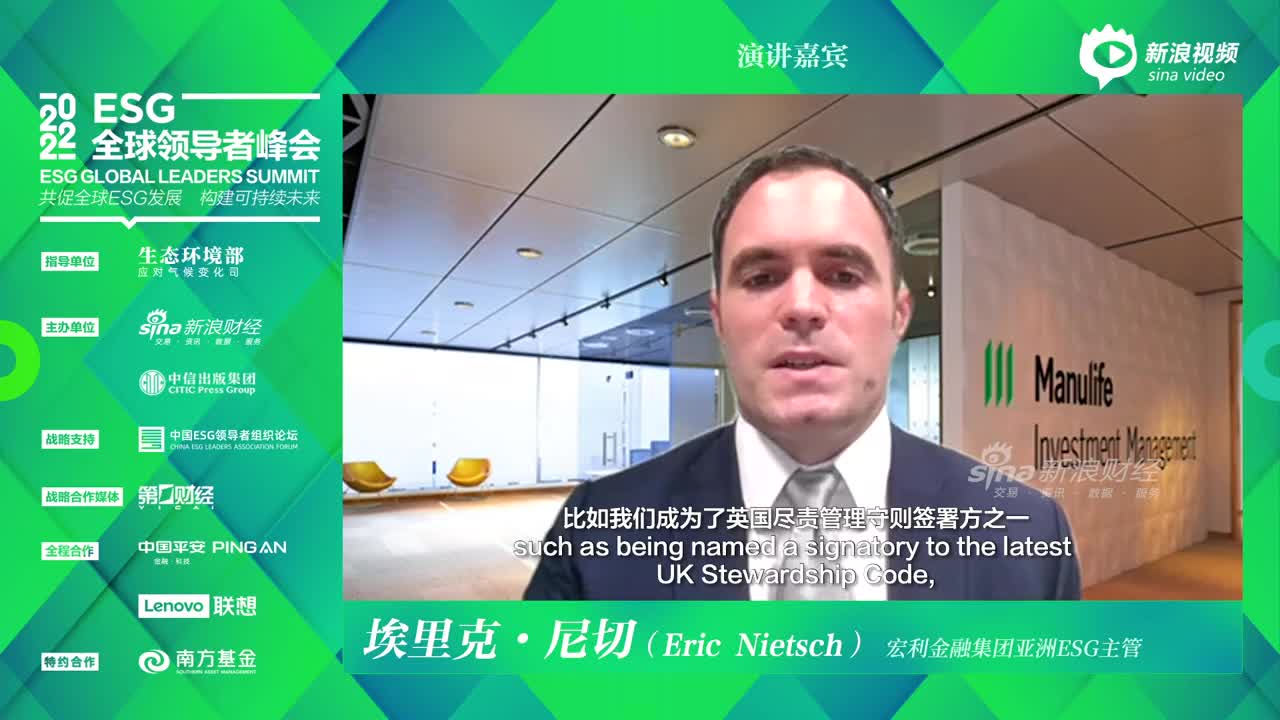 大家好,我是埃里克·尼切,是宏利投资管理亚洲可持续投资团队主管。非常高兴今天能够参加新浪财经的ESG全球领导者峰会。宏利投资管理是宏利金融集团的财富和资产管理分支。