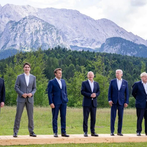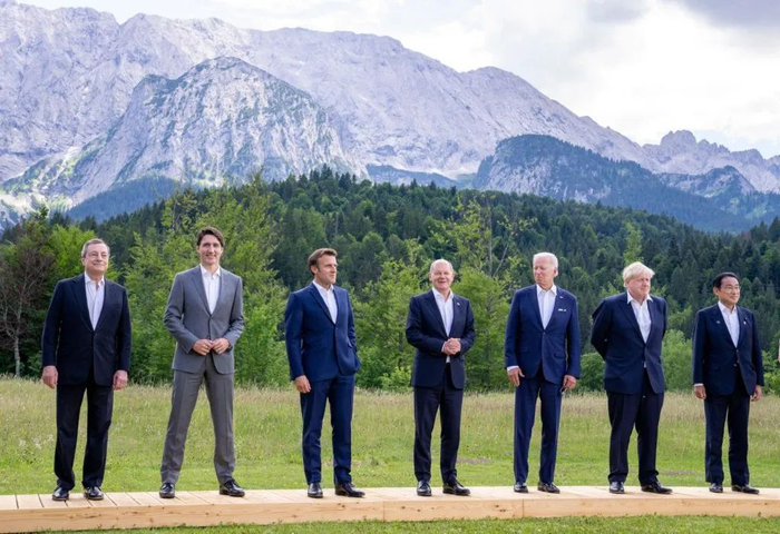 6月26日,意大利、加拿大、法国、德国、美国、英国和日本的国家元首共同出席在德国举行的G7峰会。图片来源:Paul Chiasson/Alamy