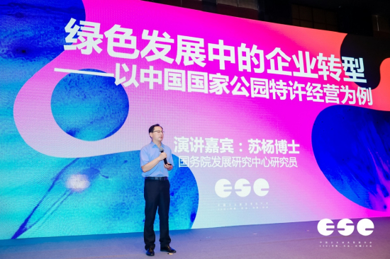 在本次论坛率先进行的主旨演讲中,国务院发展研究中心研究员苏杨以《绿色发展中的企业转型——以中国国家公园特许经营为例》为题发言,他称绿色发展的法律和制度会同时给企业带来约束和机遇,并强调了保护方式、发展方式和治理结构的联合创新是文旅企业在国家公园等保护地实现转型发展的必由之路。
