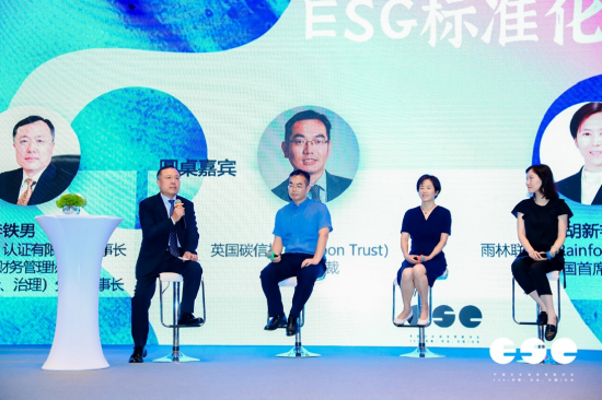 中财协ESG分会理事长、中标合信(北京)认证有限公司董事长李铁男与论坛嘉宾:中国标准化研究院理论战略研究所副研究员赵文慧、英国碳信托中国区总裁赵立建和雨林联盟中国首席代表胡新艳,共同围绕“ESG标准化”展开讨论。他们提出,ESG与可持续标准认证的关系相辅相成,好的标准确保了ESG披露框架和评级体系的准确性与可信度,提高披露和评级的质量。