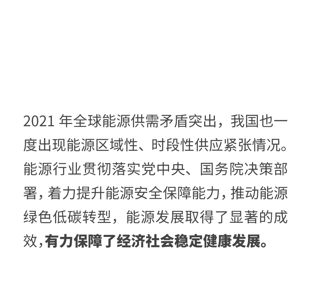 期间,电规总院院长助理、清洁能源研究院院长刘世宇表示,我国能源供应保障能力稳步提高,2021年一次能源生产总量达到43.3亿吨标准煤,同比增长6.3%,增速较上年提高3.8个百分点。煤、油、气产量稳步提高,原煤产量41.3亿吨创历史新高。原油产量1.99亿吨,连续三年持续稳定增长。天然气产量2076亿立方米,连续五年增产超过100亿立方米。电力生产较快增长,全年新增发电量超过7500亿千瓦时,创历史新高。能源储运设施建设稳步推进,主要煤运通道运输能力持续加强,跨省区输电通道布局不断完善,储气库、LNG接收站规模稳定增长,油气管网互联互通进一步增强。