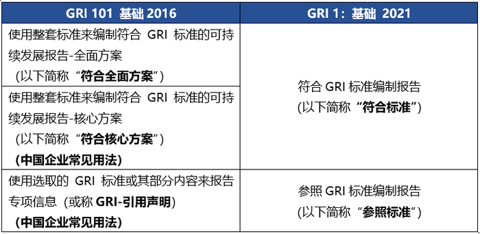 本文对比符合标准和参照标准两种方式,配合已使用新版GRI标准的企业披露案例,为企业使用GRI标准(2021版)提供借鉴思路。