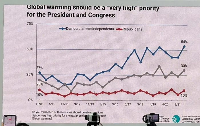 耶鲁大学气候传播项目中心主任安东尼·莱斯维茨博士介绍:“从全球尺度来看,发达国家的公众气候认知相对较高,一些发展中国家的认知水平相对较低。大多数全球公众认为气候变化正在发生,对气候危机表示担心,并希望自己国家的政府采取行动。在美国,相比共和党对气候危机的漠不关心,气候议题近年来飙升为民主党治国理政的首要事项,反映了美国国内的政治分歧。”