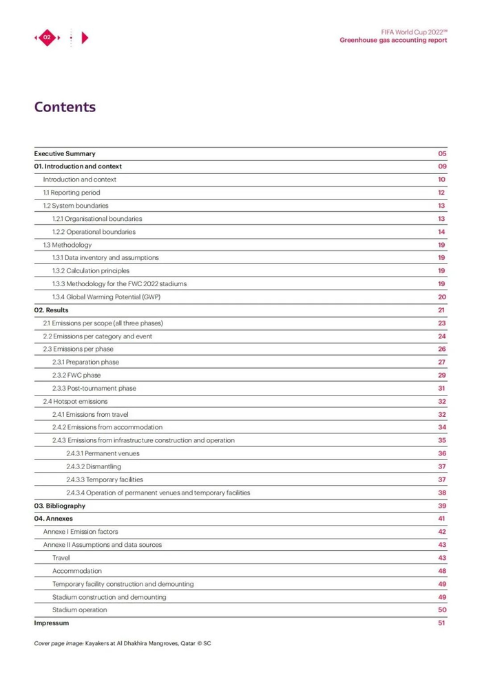 11月21日,卡塔尔世界杯开幕,2021年,国际足联对外发布了《卡塔尔世界杯温室气体核算报告》。报告显示,从2011年4月至2023年6月的筹备、赛事和赛后三个阶段,本届世界杯报告期温室气体排放总量估计为363万吨二氧化碳当量。其中大部分(98%)是间接排放(范围3,356万吨二氧化碳当量),主要来自于卡塔尔的比赛参加者,包括普通公众、官员和工作人员的旅行。