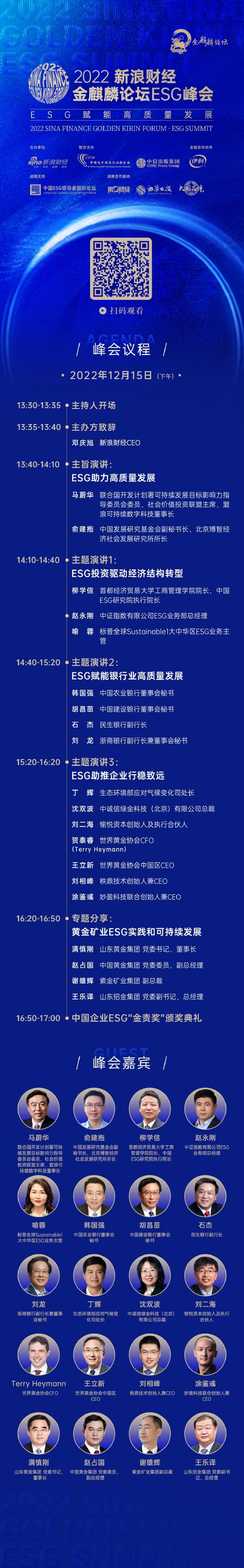 有鉴于此,新浪财经将于12月15日举办2022新浪财经金麒麟论坛·ESG峰会 (点击预约,观看峰会),邀重磅嘉宾,共议ESG与高质量发展。