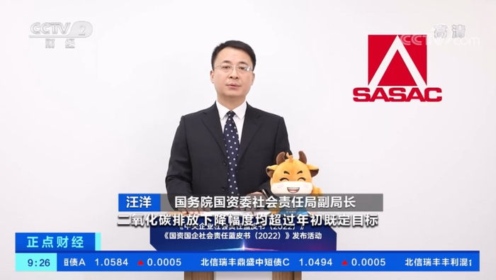 国务院国资委社会责任局副局长汪洋表示中央企业严格落实环境政策,加强节能减排工作,2022年中央企业万元产值综合能耗、二氧化碳排放下降幅度均超过年初既定目标。